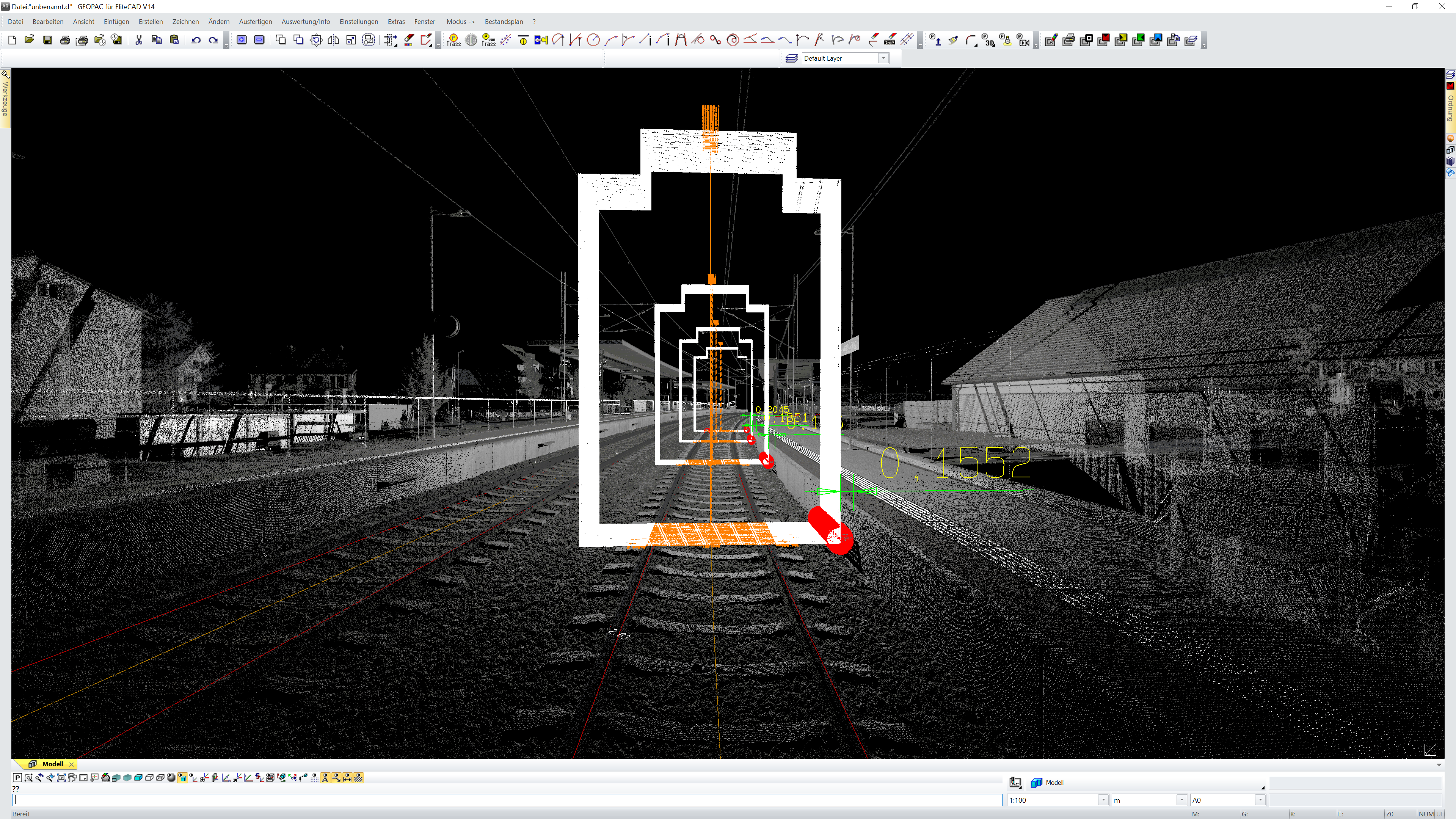 Wussten Sie schon...?dass Kollisionsprüfungen in Tunnelbauwerken, zur Haltestellenplanung sowie in der Betrachtung sonstiger Peripherie zur Gleisachse mit unserem neuen Hüllkurven Add-on Punktwolke (PW) ohne erheblichen Mehraufwand relativ unkompliziert durchgeführt werden können? Hierzu werden in einem ersten Schritt die Planungs-/Bestandstrassierung sowie die zugehörige(n) Punktwolke(n) im CAD zusammengelesen und richtig positioniert. GEO-Referenzierungen helfen dabei, die optimale Ausrichtung im Hinblick auf die notwendige und höchstmögliche Genauigkeit zu finden. In einem zweiten Schritt erfolgt dann im Nachgang zur 3D-Hüllkurvenermittlung die Kollisionsanalyse. D.h., das CAD-System erzeugt im Auswertungsergebnis an jedem Punkt einer Einragung in das gewählte Fahrzeug-/Lichtraumprofil respektive zu jedem Punkt eines vorab definierten erweiterten Überwachungsraumes außerhalb des Fahrzeug-/Lichtraumprofils ein Querprofil und kennzeichnet dabei für den Anwender deutlich erkennbar den(die) kritischen Punkt(e) entsprechend der vorab getroffenen Anwender(farb)definition.