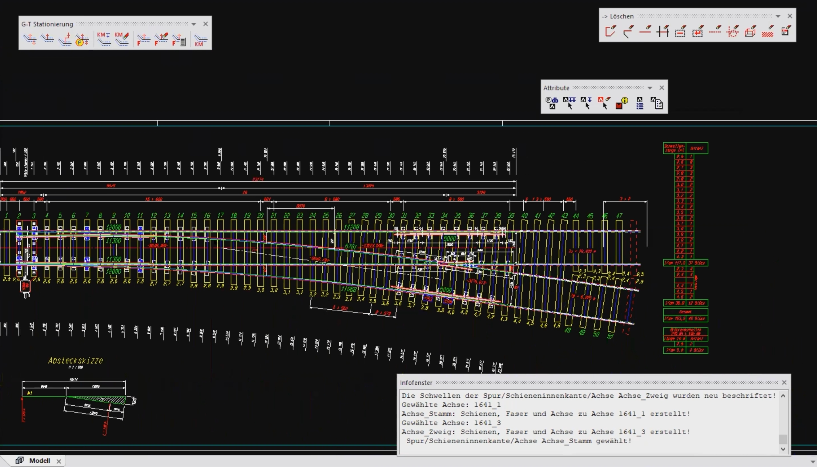 Spurstangen- und Schwellenteilungspläne sowie Gleisjoche erzeugen Sie
