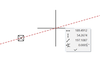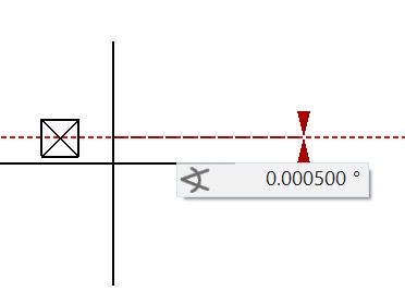 Wenn z.B. in einer Zeichnung eine Auswahl um einen kleinen Winkel gedreht werden soll, erfolgt folgende Systemmeldung (in Gon) im Infofenster: ACHTUNG! Winkel 0.006 geändert: -0 Sofern also die Drehung einer Auswahl um einen kleinen Winkel gewünscht wird, muss grundsätzlich immer zwei Mal gedreht werden. Beispiel: Eine Auswahl soll um 0.005 Gon gedreht werden. Ist eine Hilfslinie mit einem Winkel kleiner 0.007 Gon bzw. 0.006 Grad gewünscht, muss diese mit der Funktion „Gerade durch zwei Punkte“ eingegeben werden. Dabei wird der erste Punkt mit dem richtigen Fangmodus angetippt. Danach kann im Wertefeld der gewünschte Winkel eingegeben und abschließend mit der Enter/Return-Taste bestätigt werden. Eingabe: