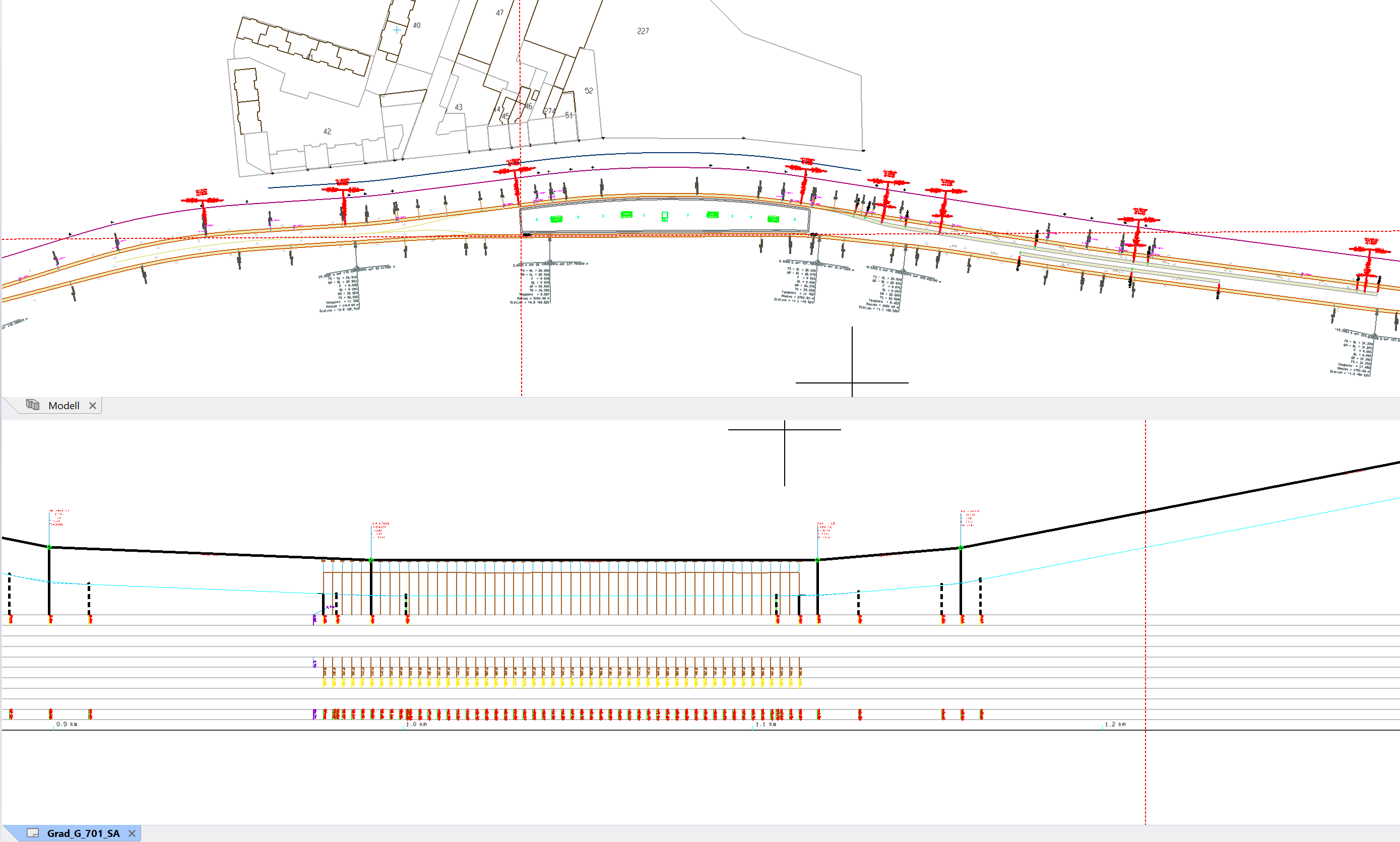Hierzu muss der Gradientenaufbau mittels der Funktion „Gradiente in Ansicht“ gestartet werden. Der Dialog „Gradientendarstellung“ entspricht dabei übrigens der klassischen Darstellung, mit Außnahme das hier nach Bestätigung des Dialogs die Gradiente unter der Ansicht „Plots“ mit dem Namen der Achse dargestellt wird. Dieses 2. Ansichtenfenster kann durch antippen mittels rechter Maustaste auf dem Ansichtsreiternamen und Auswahl „Neue horizontale Registerkartengruppe“ übereinander (oder zweiter Bildschirm) dargestellt werden: