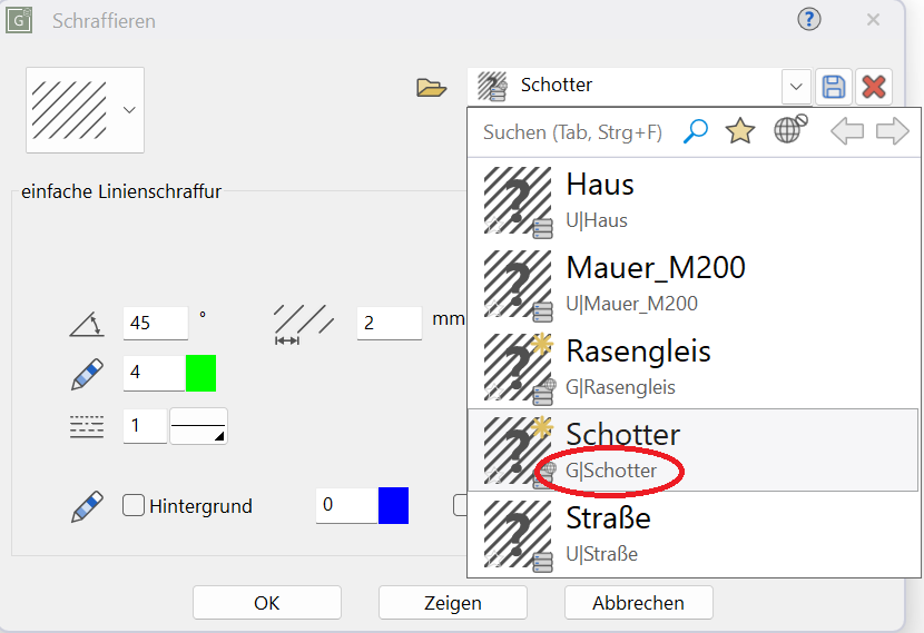 Standardparameter zur Ausgestaltung von Zeichnungen (u.a. Stift-,